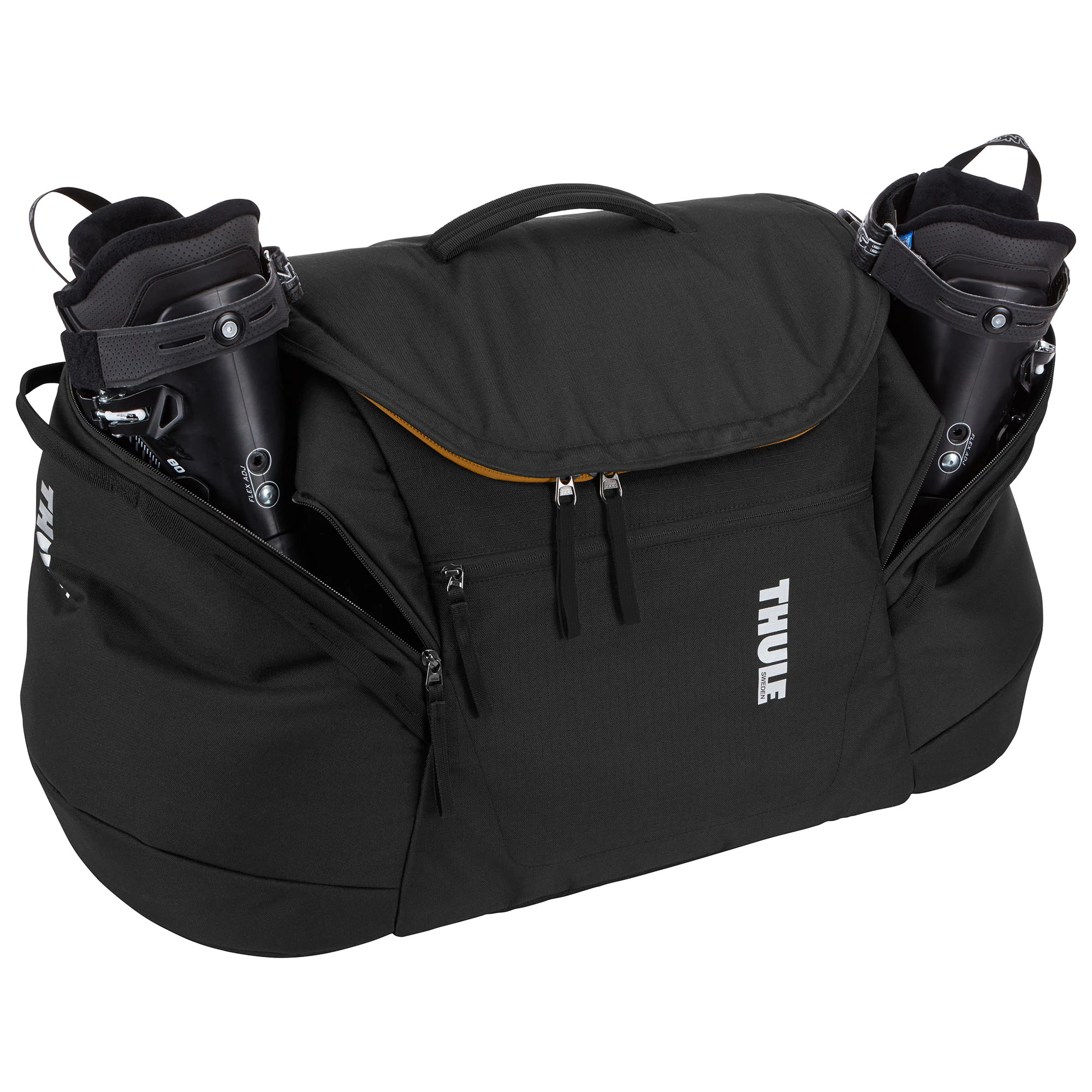 The Thule Roundtrip Snow Duffle Bag is designed to keep your feet dry, your goggles safe, and your gear organized. This bag helps keep your load balanced by storing one boot in each oversized side pocket and you can easily change in and out of boots in any location while keeping feet dry by flipping down the main opening to use as a standing mat. You can also store your helmet, goggles and other snowsport essentials in a spacious main compartment. It’s easily connects to any Thule RoundTrip Ski or Snowboard Bag using the bottom attachment loops. There are also drain holes in the bottom to let water escape from each boot pocket, so everything stays dry. The Thule RoundTrip Snow Duffle Bag goes where you go this winter.